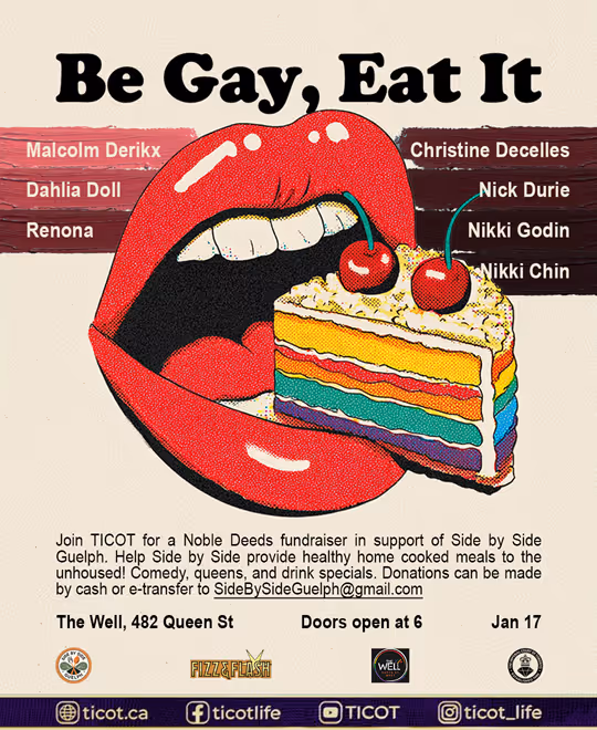 Join TICOT Queens and comedians in support of Side by Side Guelph.