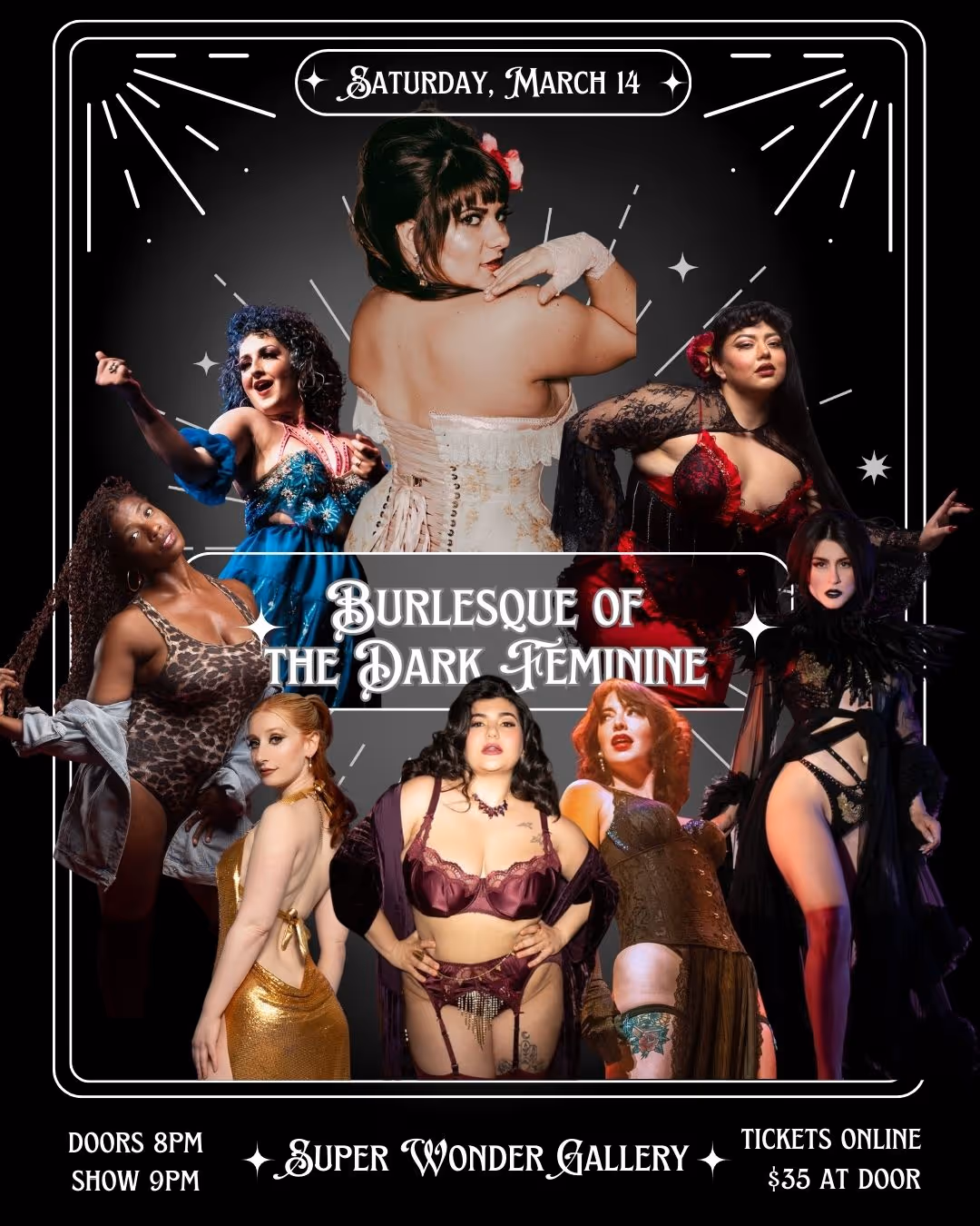 Burlesque of the Dark Feminine is an homage to the dark feminine archetype we know and love. Join us on the dark side of sexy.