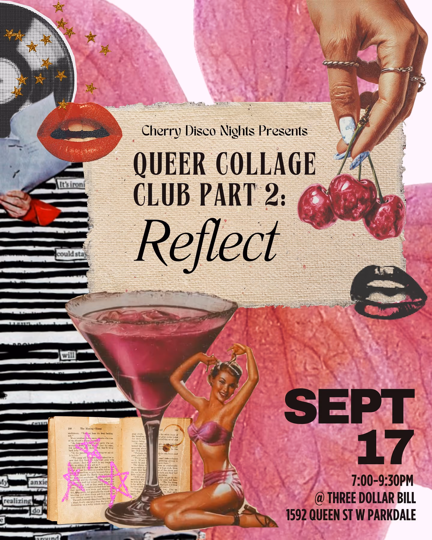 On Wednesday, Sept 17th, join us at 💵 Three Dollar Bill for the next edition of Queer Collage Club: Reflect.