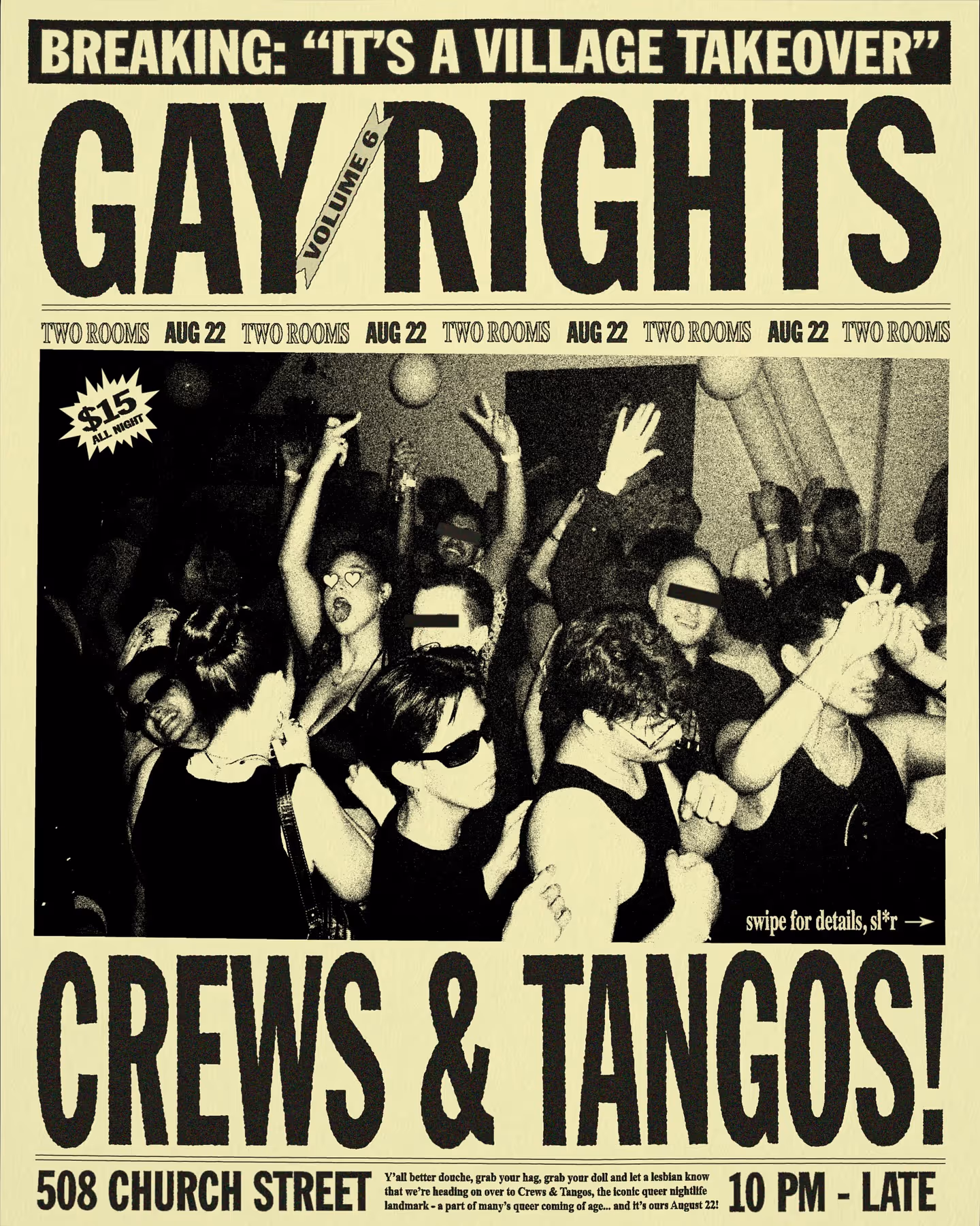 📢🎤👂🏼 we heard you loud and clear…. and we return to you on AUGUST 22 with a NEW & BIGGER VENUE, the one and the only @crewsandtangos!!! toronto’s most iconic queer nightlife landmark and this time we’ve got TWO ROOMS!! 😱🤠