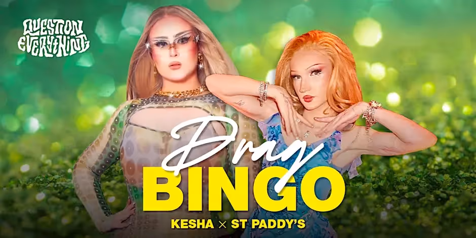 Join us for a chaotic good evening packed with Kesha anthems, shameless partying, and St. Paddy’s–themed Drag Bingo that would absolutely make 2010 Kesha proud. 🎶🥃