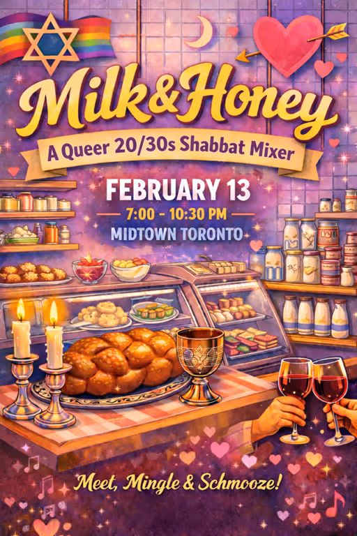 Because Shabbat should feel abundant, sweet, and full of possibility — and because dairy + queers + candles = elite combo.