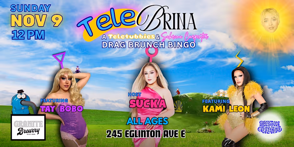 Drag, Brunch AND Bingo? Get ready for the ultimate Sabrina Carpenter & Teletubbies brunch hosted by Sucka Queen with Tay Bo Bo & Kami Leon!