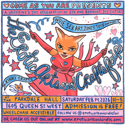 Come join us February 14th from 10am-5pm as we welcome creatives, crafters, zinesters, card makers, and artists of all types to showcase their erotic creations for this one day celebration of DIY sex and romantic culture. We've got free admission, giveaways, a raffle, and so much more. Check us out on instagram @eroticartsandcraftsfair for more information!