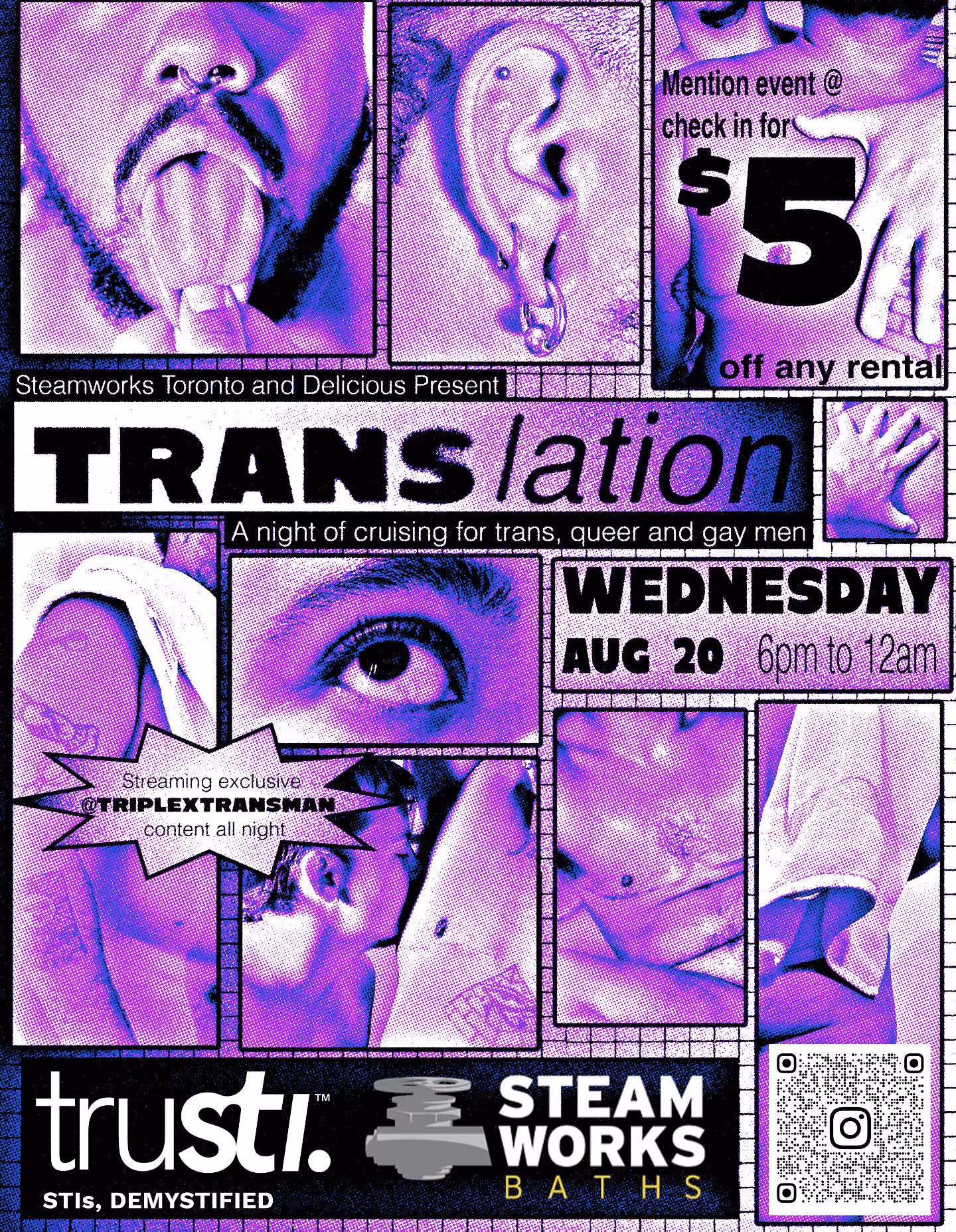 As always, TRANSlation is a trans-masc centred cruising event at Steamworks Baths. There is zero tolerance for transphobia.